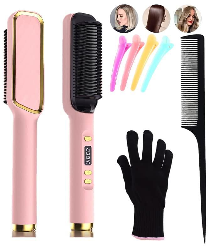 Cepillo Alisador de Cabello, Aniones Cepillo Alisador con Guantes y 4 Clips, Cepillo de Aire Calient Eléctrico con Temperatura A