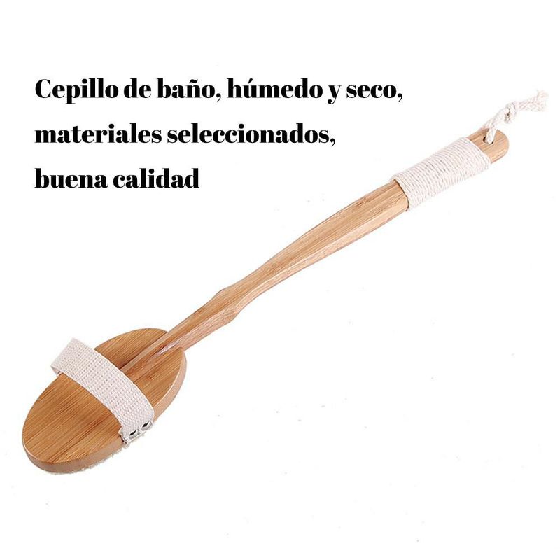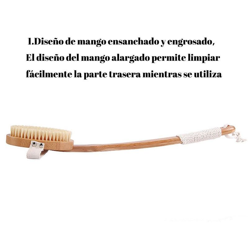 HogarBañoAccesorios para BañoCepillo de masaje de bambú con cerdas de cerdo, mango largo y curvado, cepillo de baño, desmontable.