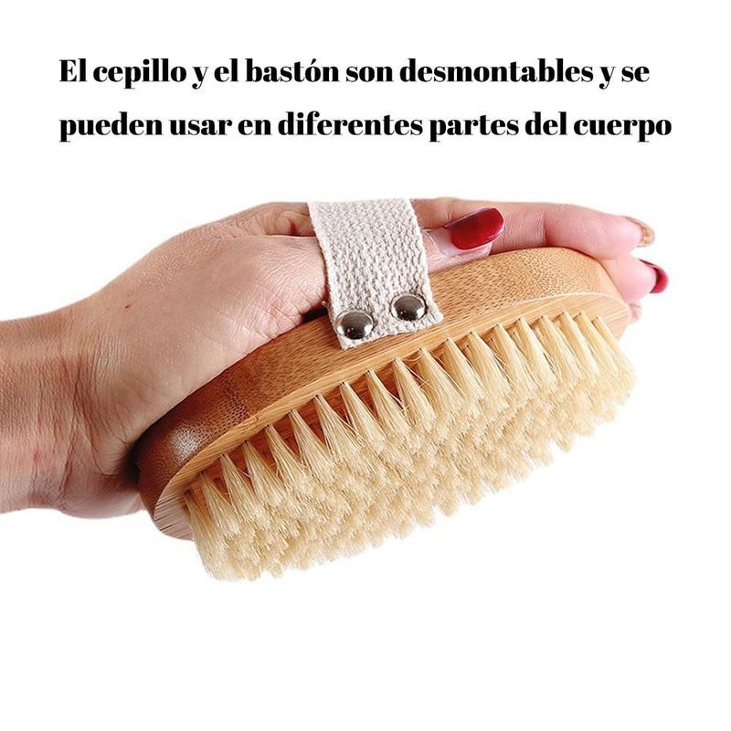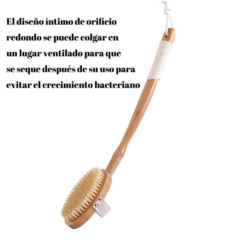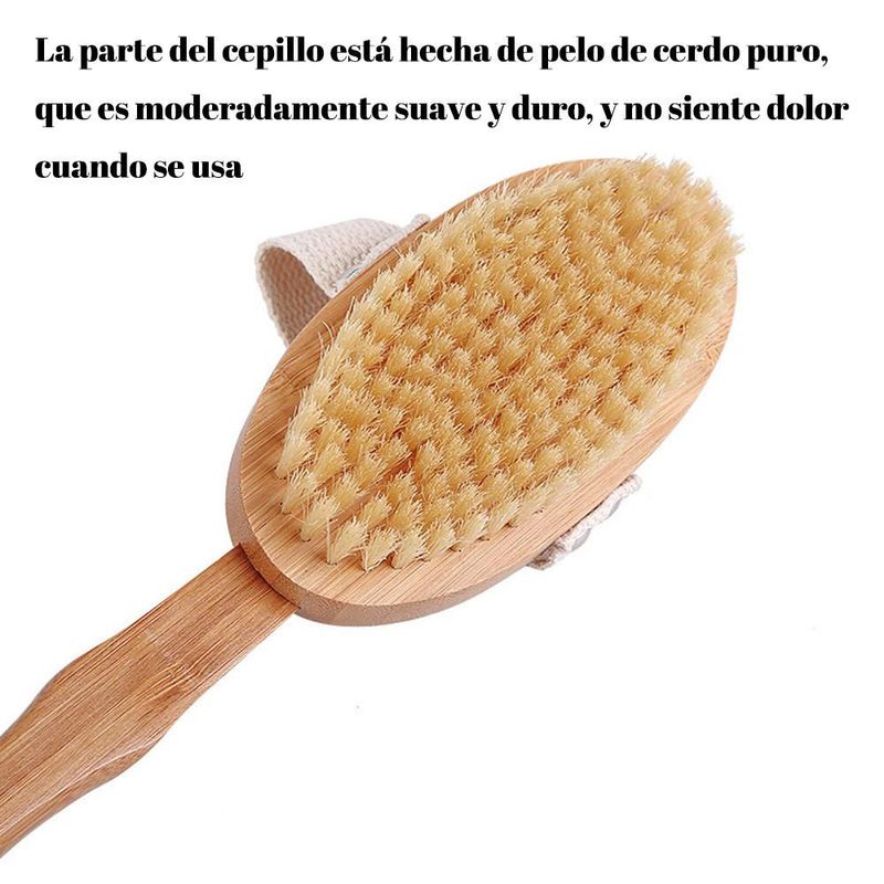 Cepillo de masaje de bambú con cerdas de cerdo, mango largo y curvado, cepillo de baño, desmontable.