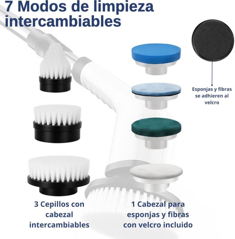 Cepillo Eléctrico de Limpieza Blulander para Baño, 7 Cabezales Intercambiables, Inalámbrico,, Mango Ajustable (Color AL Azar Blanco / Negro)