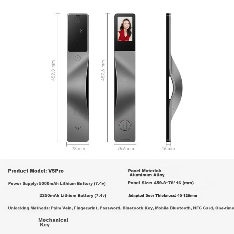 Cerradura Inteligente Lockin V5 Pro Sensor Vena Palmar Pantalla Grande Apertura Derecha