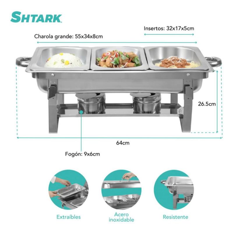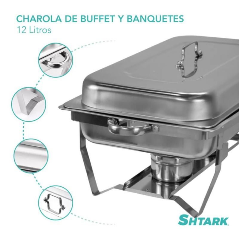 Chafer Buffet Banquete Rectangular Acero Inoxidable 12 Lts