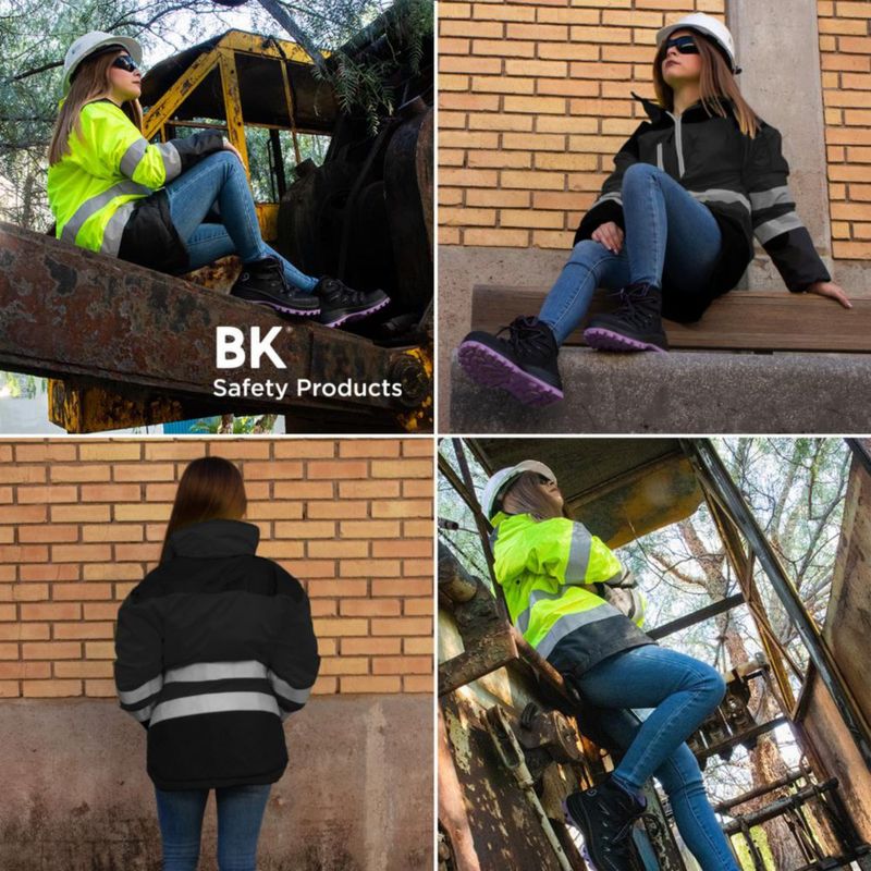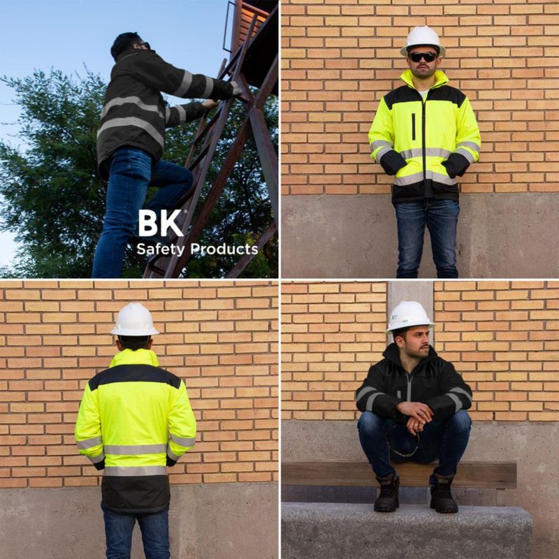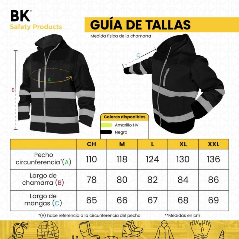 RopaRopa de CaballeroChamarras y chalecosChamarra Polar Thermic de trabajo impermeable con reflejante alta visibilidad Talla mediana Negro Bk Safety products