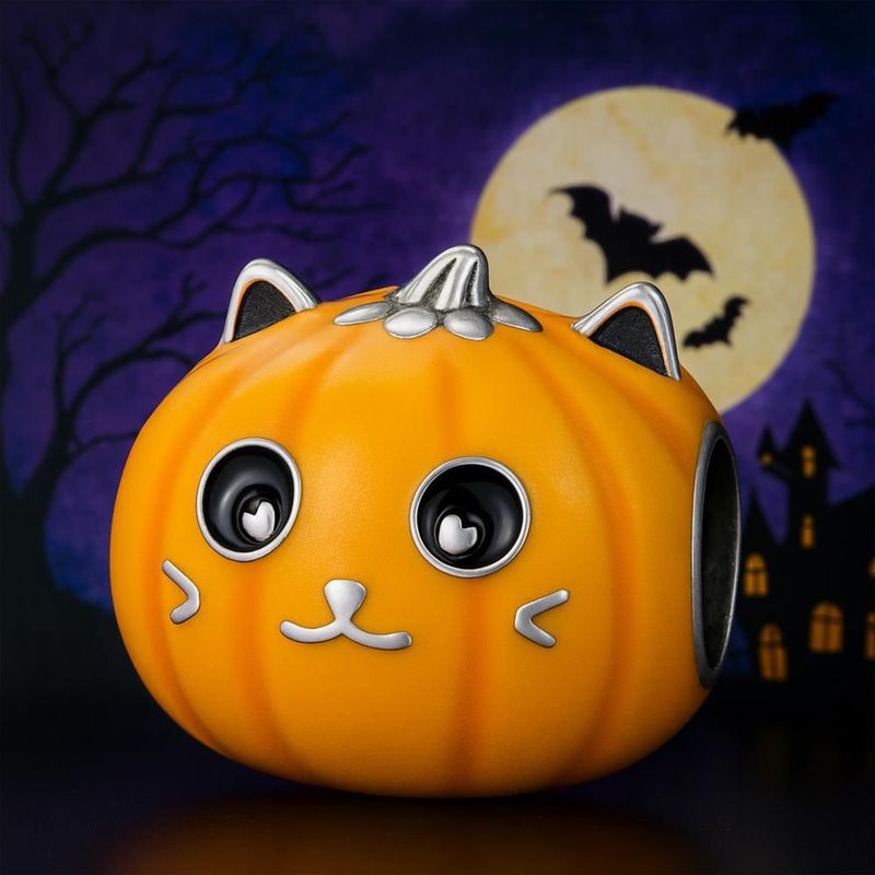 Charm calabaza gato metálico plata MXCPY-001 PumpkinCat01 Dije coleccion gato calabaza plata
