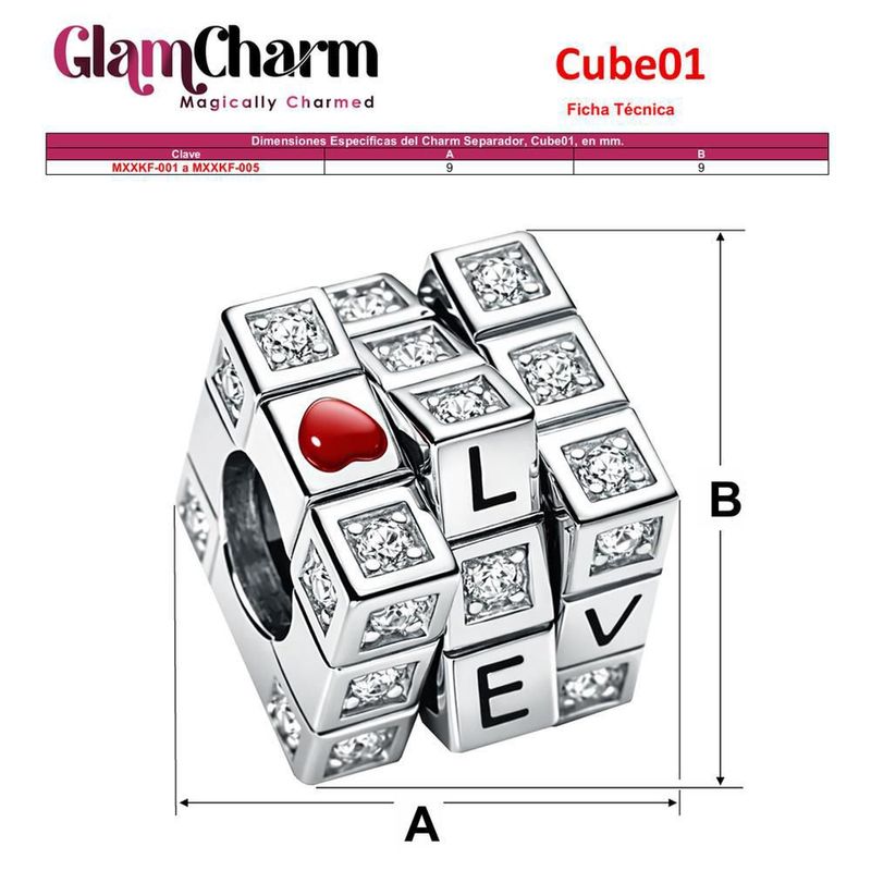 Charm cubos palabra love MXXKF-003 Cube01 Charm de Plata Elegante letras