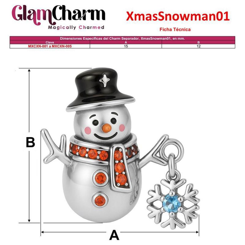 Charm Navidad diseño premium MXXWX-003 XmasSnowman02 Dije Navidad plata esterlina