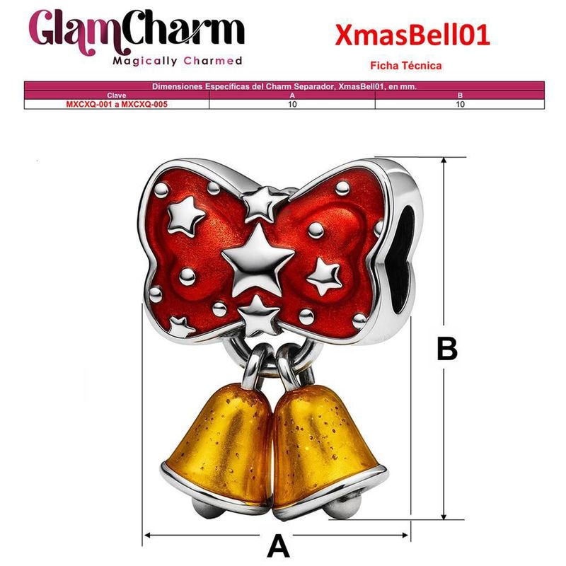 Charm navideño moño rojo MXCXQ-001 XmasBell01 Dije de navidad dorado