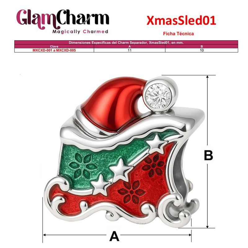 Charm navideño plata pulida MXCXD-001 XmasSled01 Accesorio pulsera navidad