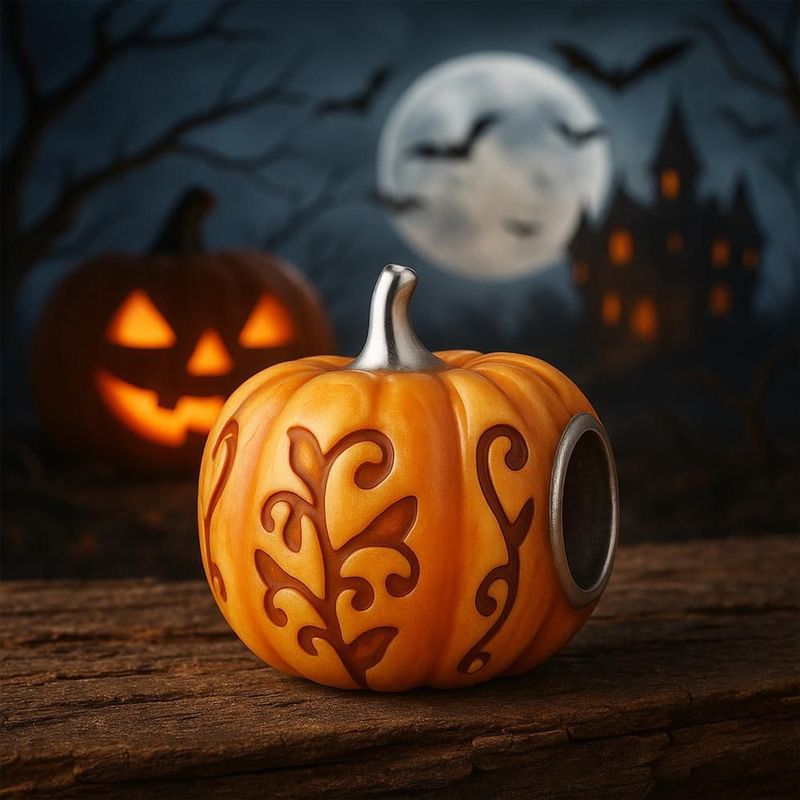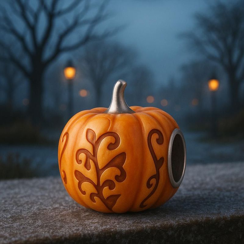 Moda y accesoriosJoyeríaOtrosCharm plata esmaltado naranja MXCUK-004 PumpkinDeco01 Charm calabaza con grabados