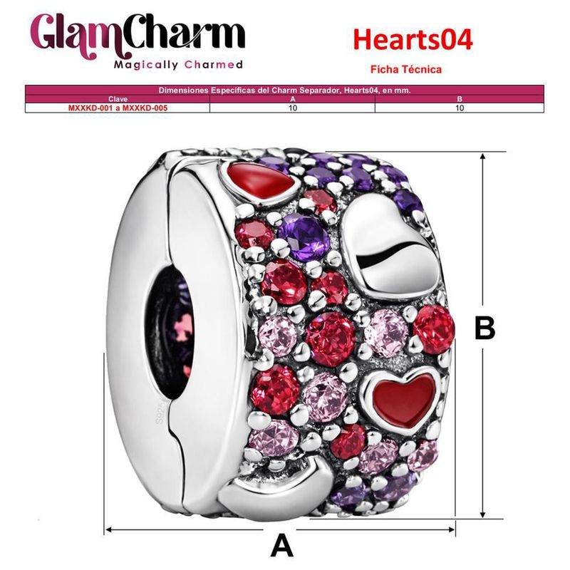 Charm Separador Clip MXXKD-001 Hearts04 Charm Separador de pulsera