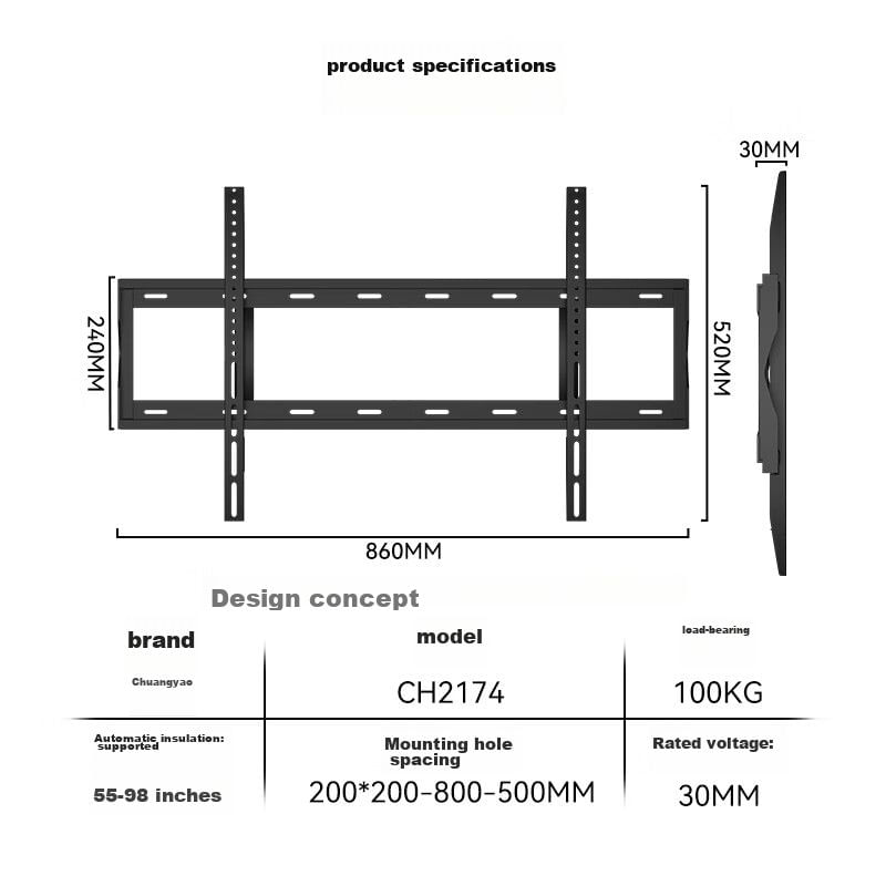 ElectrónicaAccesorios para electrónicaSoportesChuanghao Soporte de pared para TV 50"-98" ultra delgado compatible Xiaomi/Huawei/Honor/Changhong/Hisense