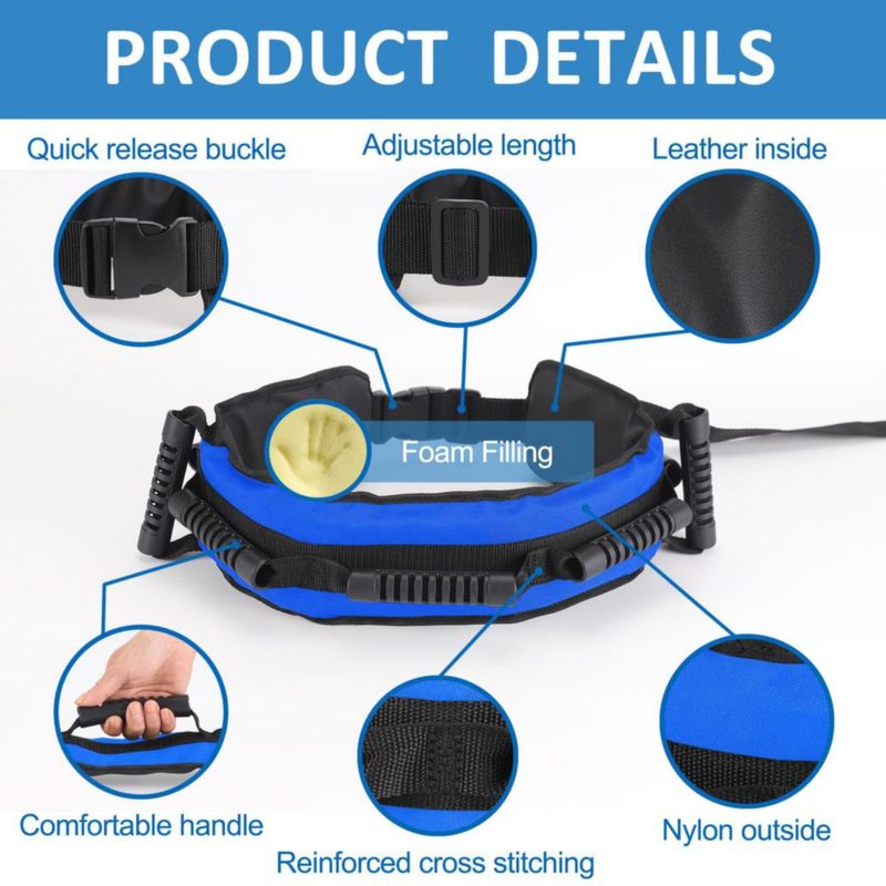 Cinturón de transferencia Jacobable Gait Belt con 7 asas acolchadas color azul