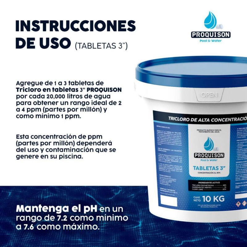 Cloro para alberca 10 kg tabletas 3 pulgadas Proquison 90%