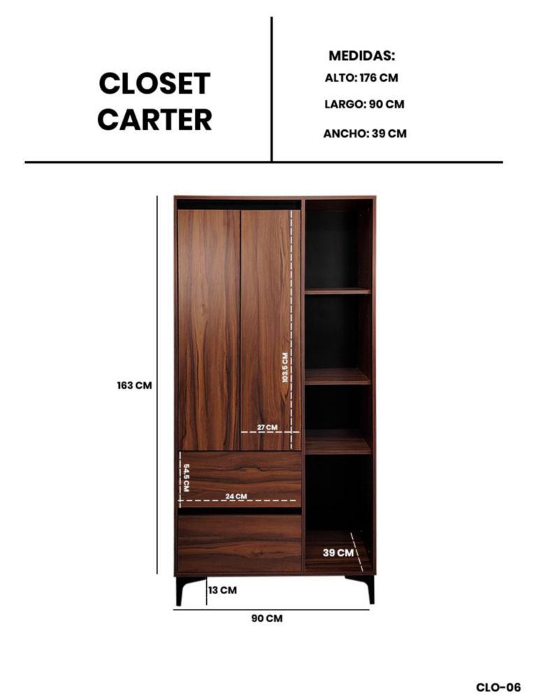 MueblesRecámaraClosets y ArmariosCloset Carter Ropero Armario Con Cajones Y Puertas