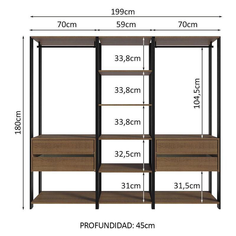 Closet Valencia 199 cm Marrón/Negro Madesa