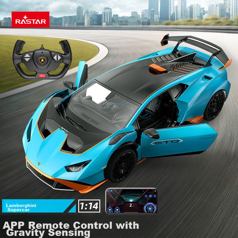 Bebés y juguetesJuguetesJuguetes ElectrónicosCoche de Juguete Control Remoto RASTAR Lamborghini Huracan STO 1:14 de caucho resistente Negro para niños