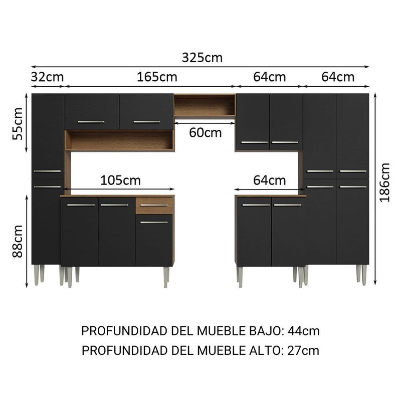 Cocina Integral 325cm Emilly Madesa 02 Marron/Negro