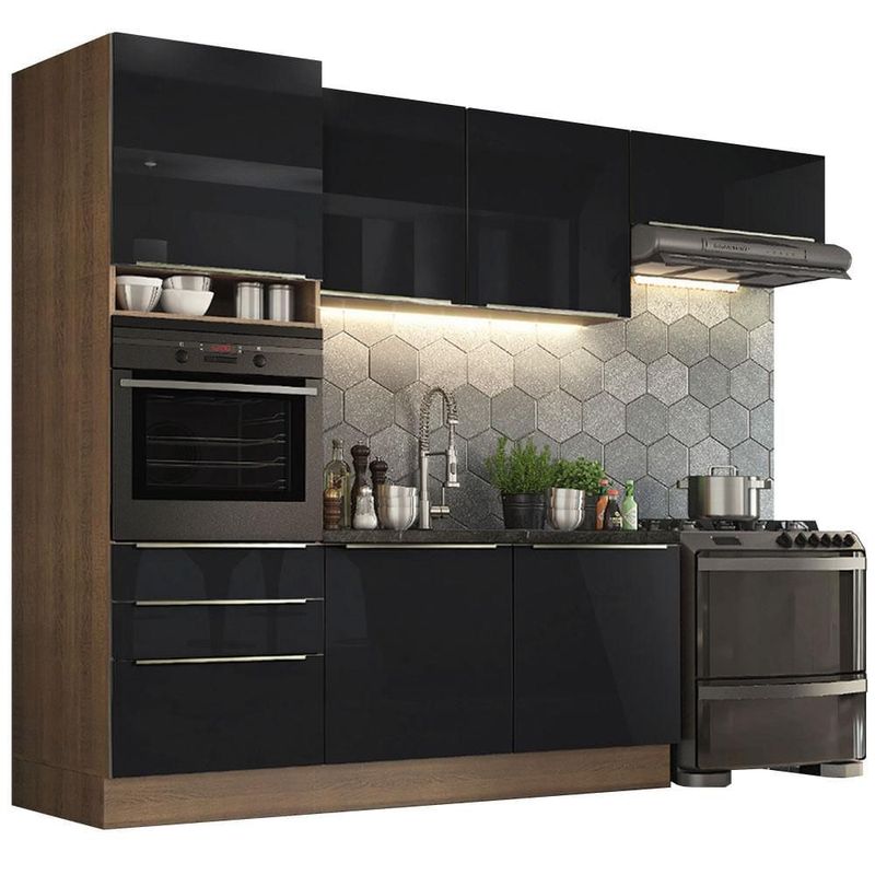 Cocina Integral Completa 260 cm Lux Marrón Negro Madesa 03