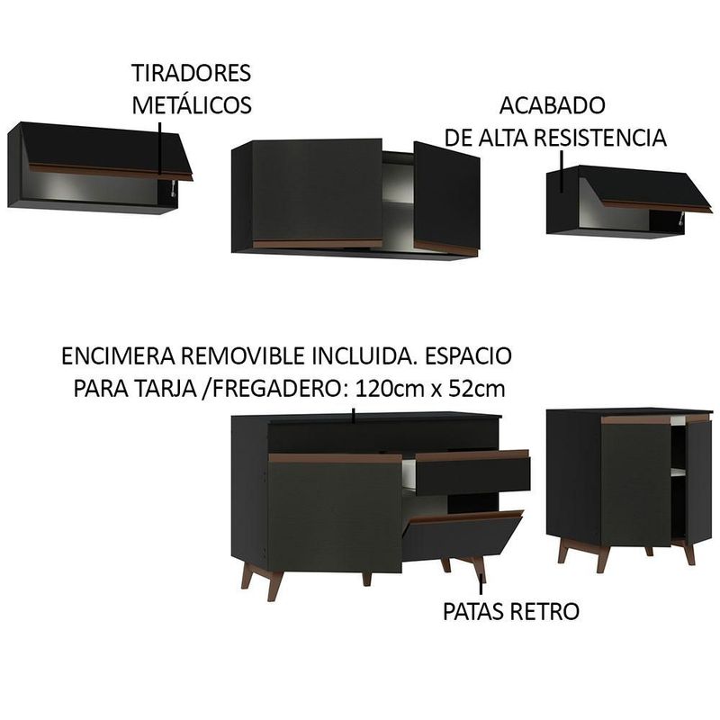 Cocina Integral Completa 260 cm Reims Negro Madesa 10