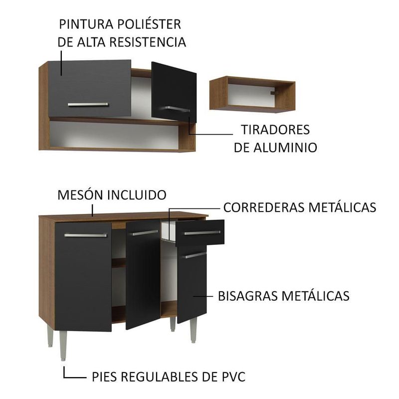 MueblesMuebles de cocinaCocinas IntegralesCocina Integral Completa Modular Madesa Emilly 165cm MN