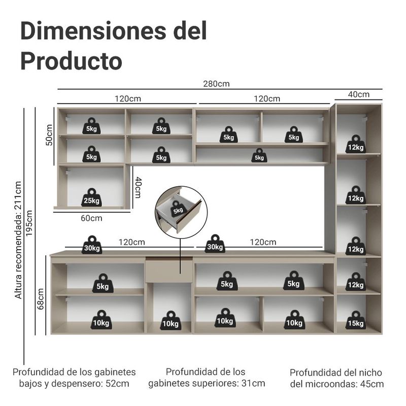 Cocina Integral Completa Modular Madesa Nice 280cm Crema 07