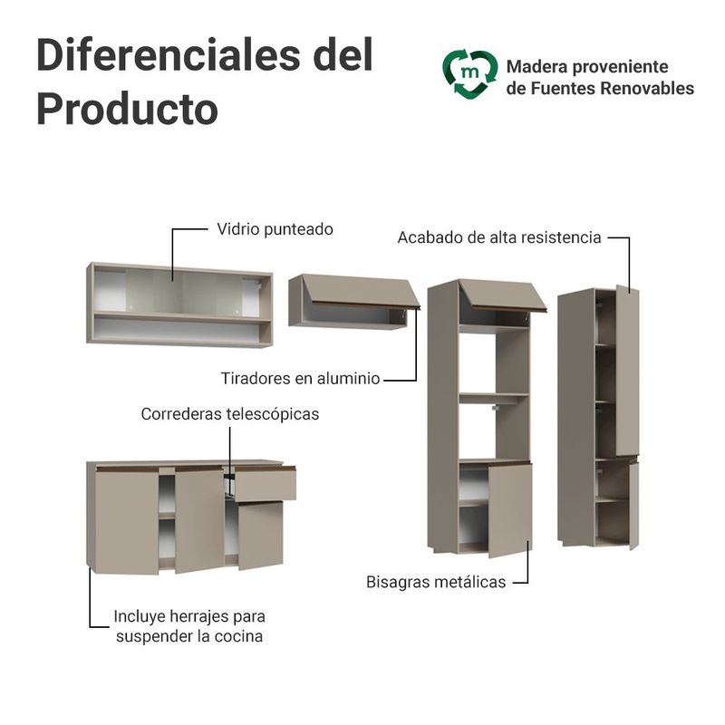 Cocina Integral Completa Modular Madesa Nice 300cm Crema 09