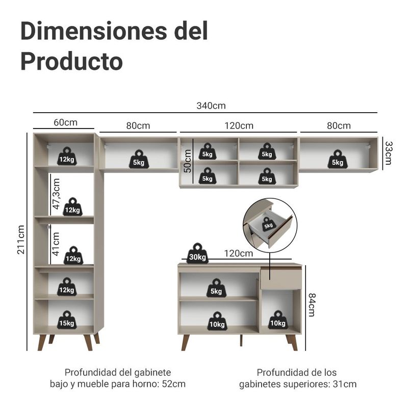 Cocina Integral Completa Modular Madesa Nice 340cm Crema 12