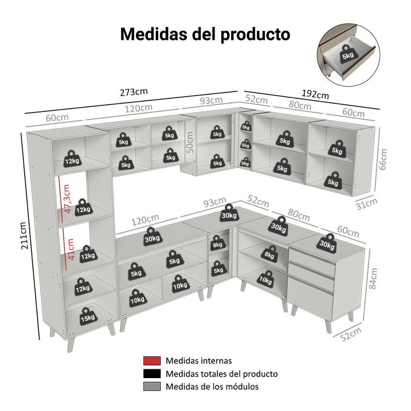 Cocina Integral Completa Modular Madesa Nice 465cm Crema