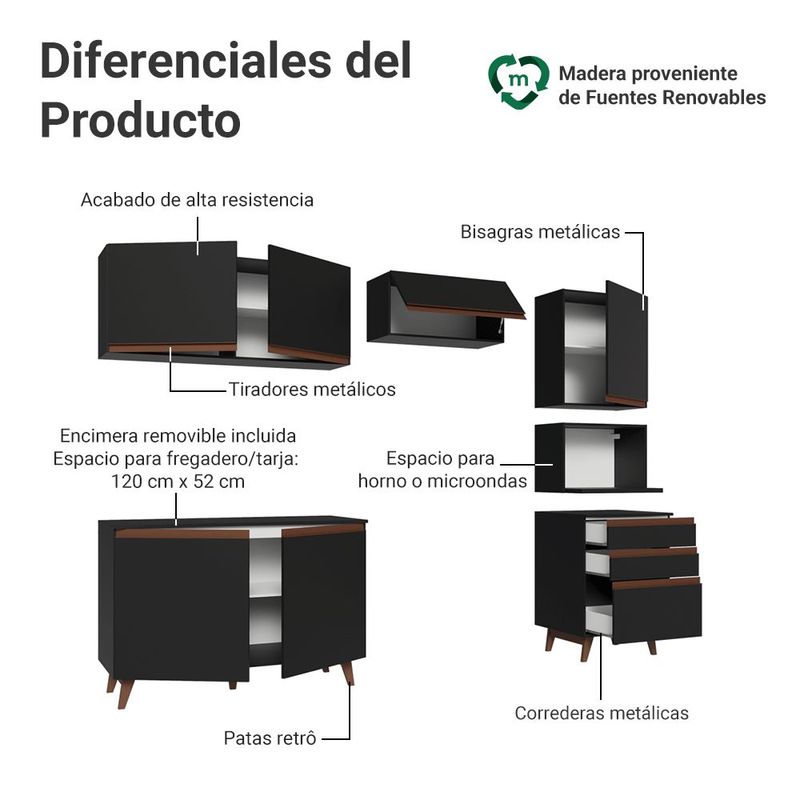 MueblesMuebles de cocinaCocinas IntegralesCocina Integral Completa Modular Madesa Reims 250cm NN 08