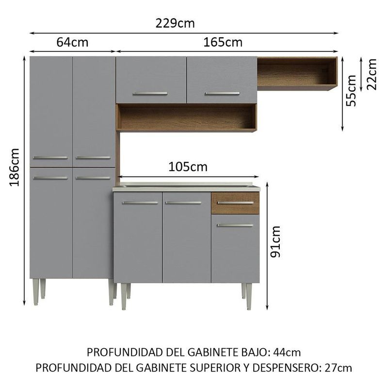Cocina Integral con Fregadero 229 cm Emilly MG Madesa 12