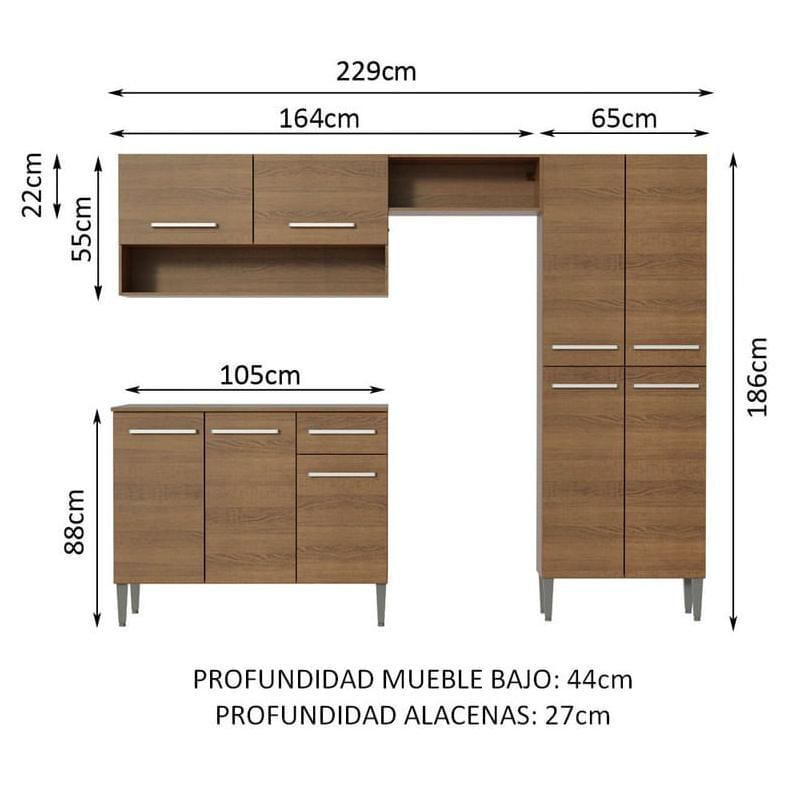 Cocina Integral Madesa Emilly Sin Mesón de Acero 229 Cm Marron