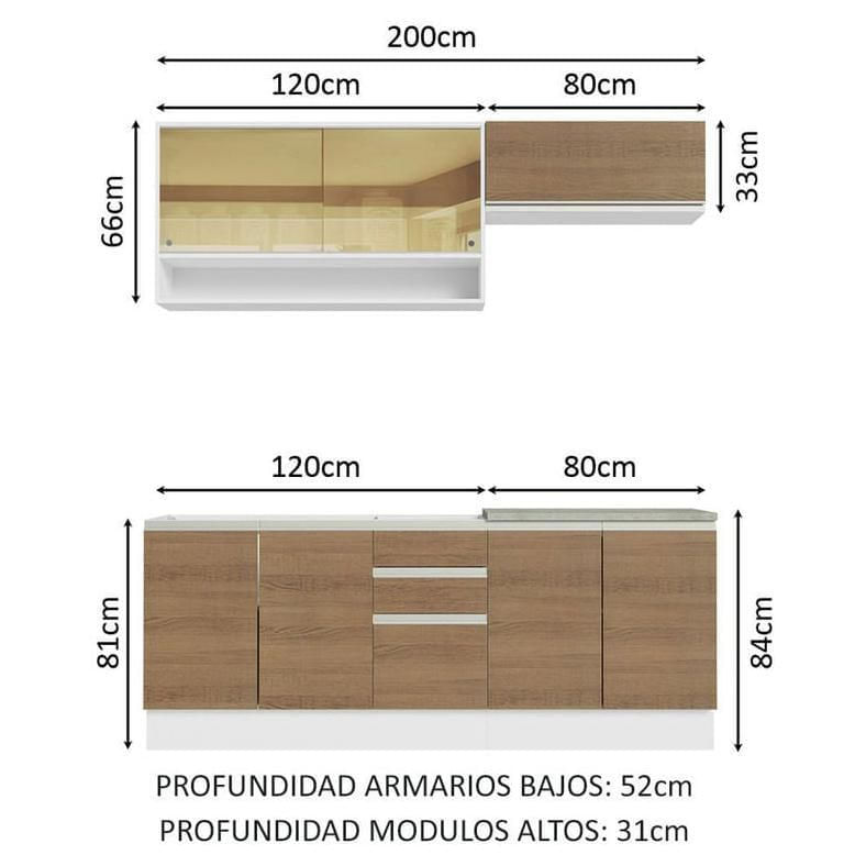 Cocina Integral Madesa Glamy Con Mesón De Acero 200 Cm Marron