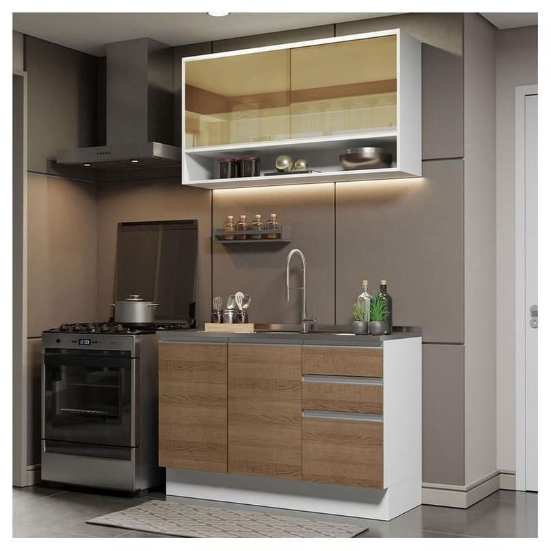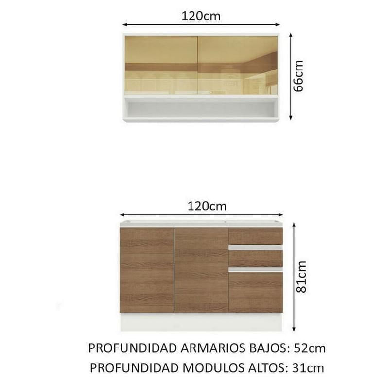 Cocina Integral Madesa Glamy Sin Mesón De Acero 120 Cm Marron