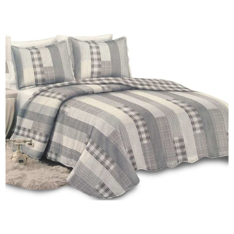 HogarBlancosCobijas y FrazadasColcha Cuadros Gris Doble Vista Matrimonial