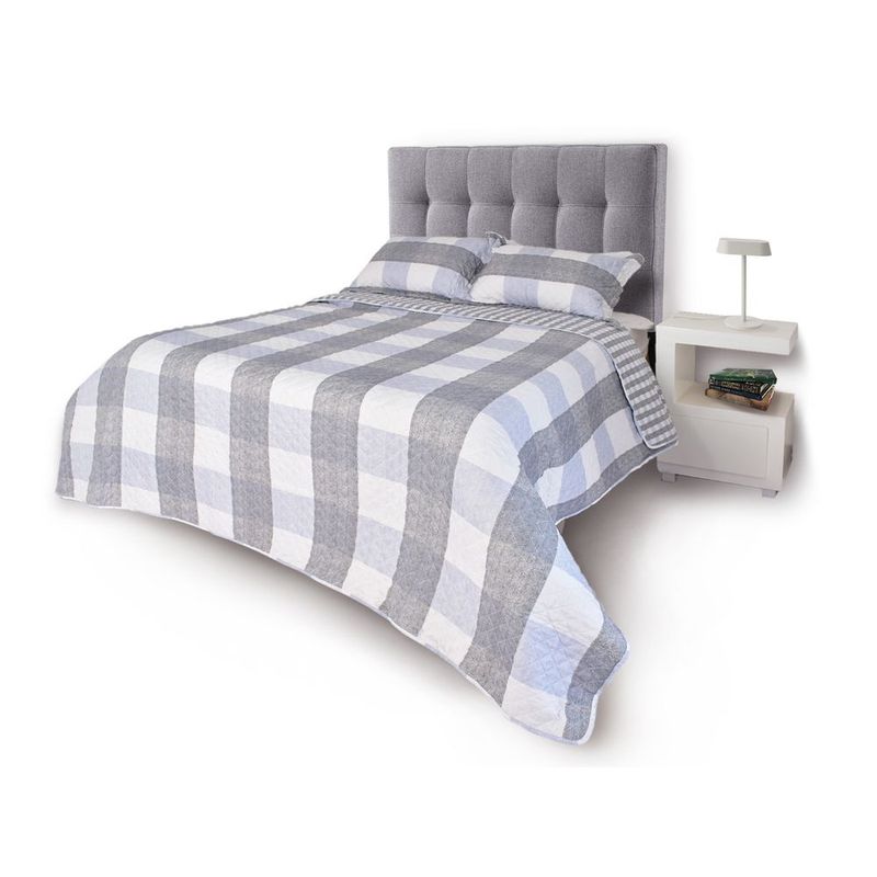 Colcha Squares Gris Doble Vista Matrimonial Dormireal