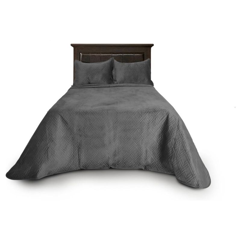 HogarBlancosCobijas y FrazadasColcha Velvet Terciopelo Gris King Size + Fundas