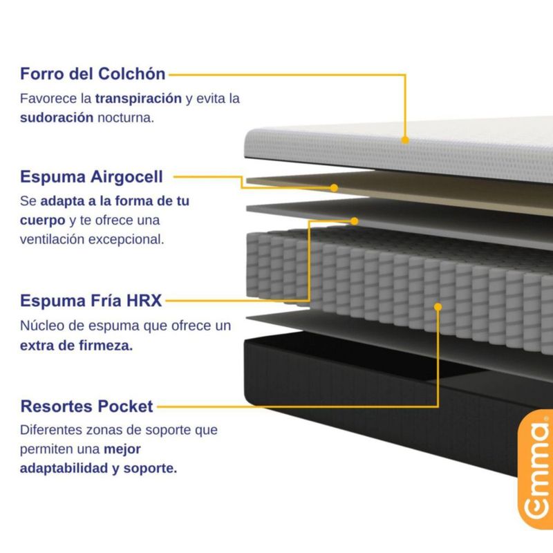 Colchón Emma Comfort Premium Queen Size Transpirabilidad y Durabilidad