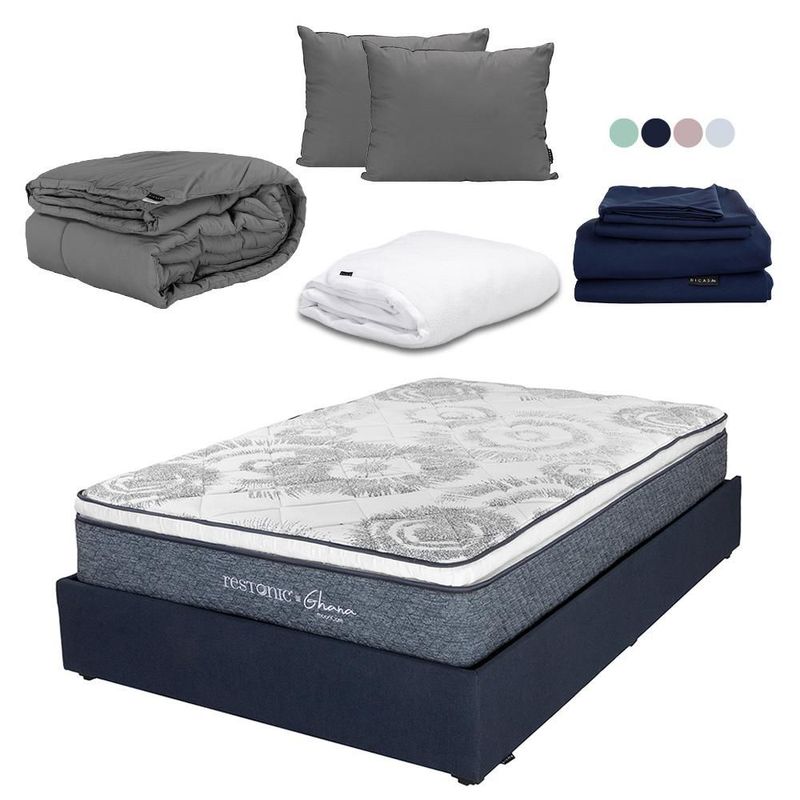 Colchones y BoxesColchonesIndividualColchón Individual Ghana Azul+ Base Cama+ Almohada+ Protector+ Sabanas+ Edredón CDZ