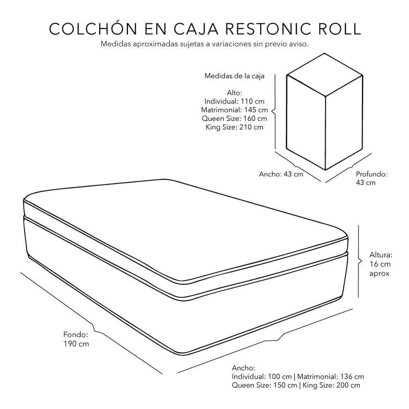 Colchón Individual Restonic Roll + Almohada Oso + Protector CZD