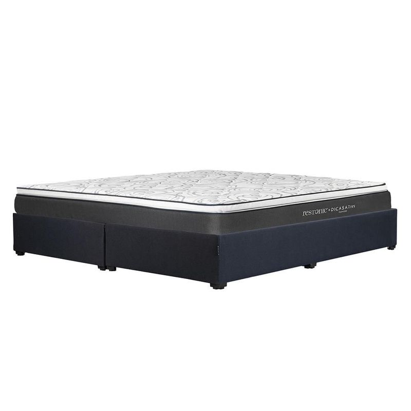 Colchón King Size Dicasa Trini + Base cama Orlando Azul Marino CZD