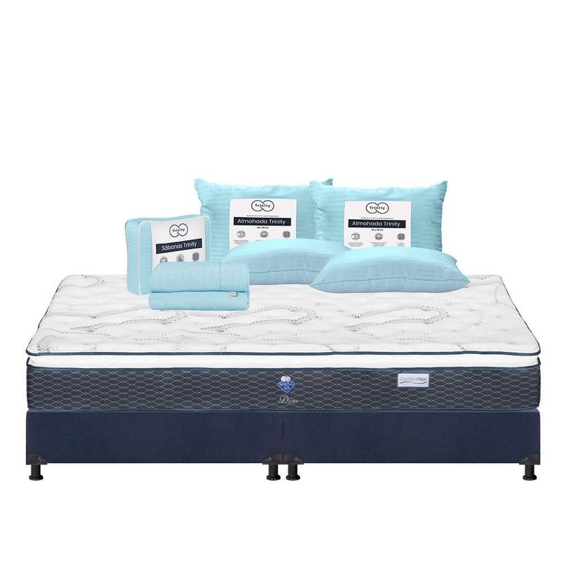 Colchón King Size Dover Azul+ Box +Almohada+ Sabanas TRY