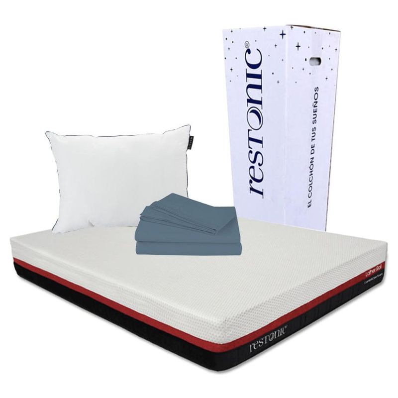 Colchón King Size en caja Restonic Roll + Almohada One + Sábanas CZD