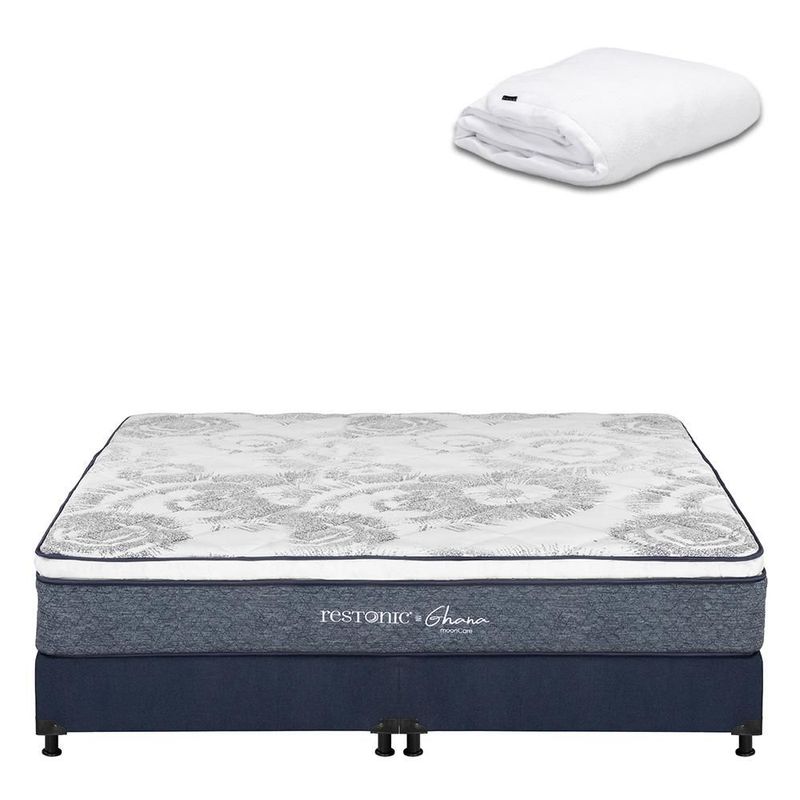 Colchón King Size Ghana Azul+ Box+ Protector Cloud CDZ