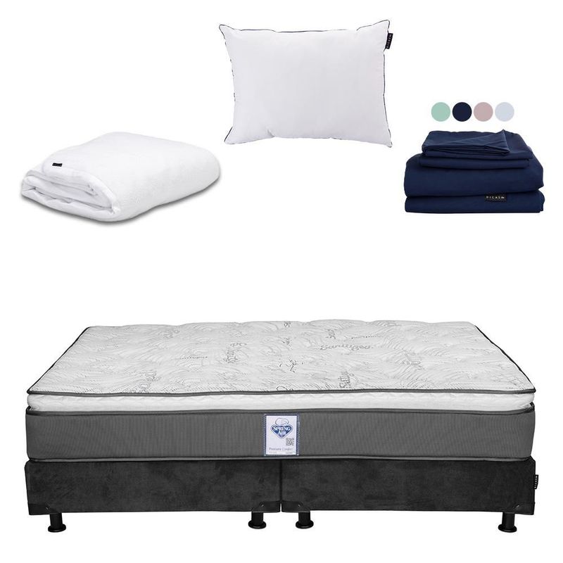 Colchón King Size Prestige Gris+ Box+ Almohada+ Protector+ Sabanas CDZ