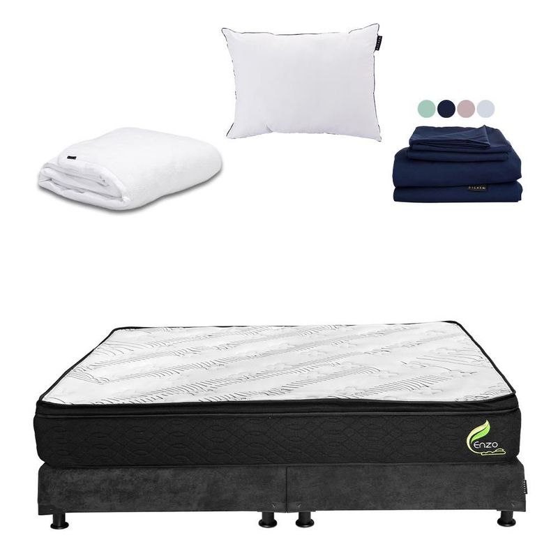 Colchón King Size Restonic Enzo Gris+ Box+ Almohada One+ Protector Cloud+ Sabanas Softy CDZ