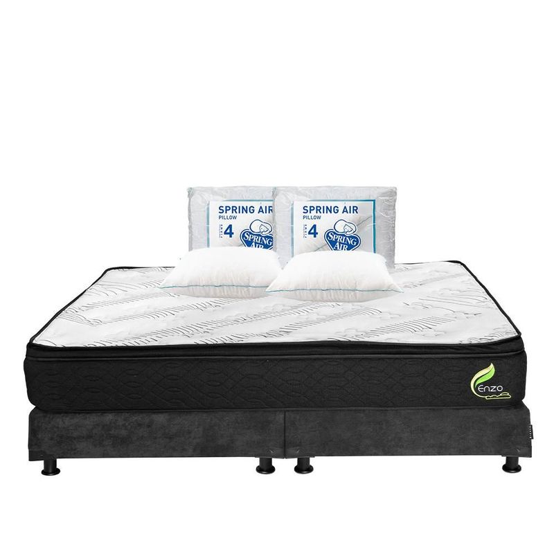 Colchón King Size Restonic Enzo Negro+ Box+ Almohada Oso 2 TRY