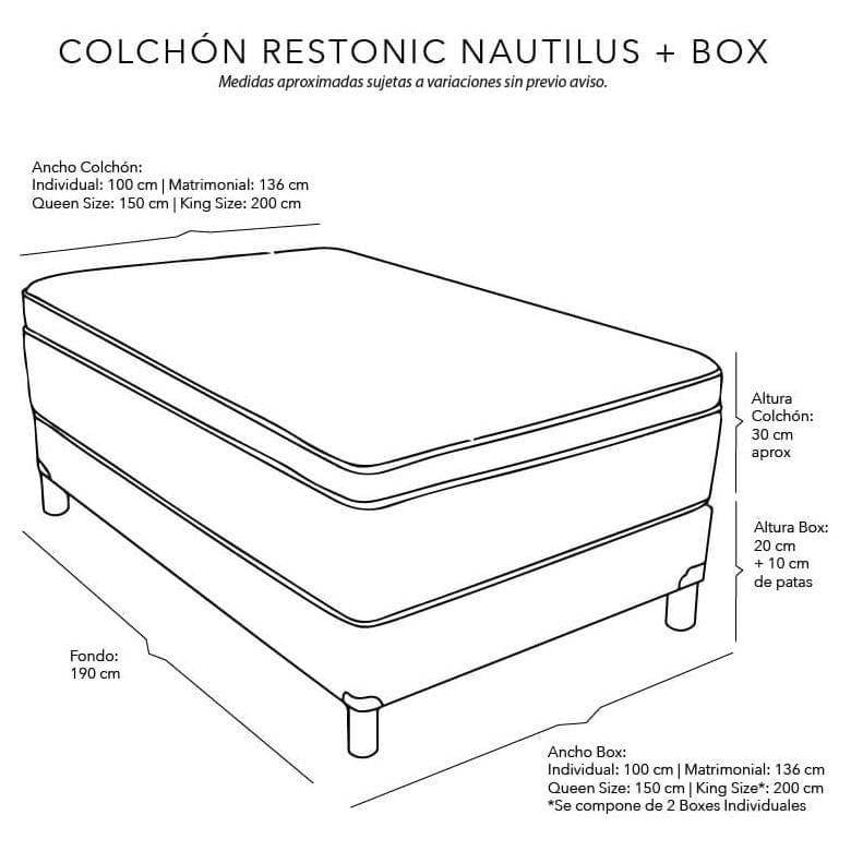 Colchón King Size Restonic Nautilus + Box + Protector CZD