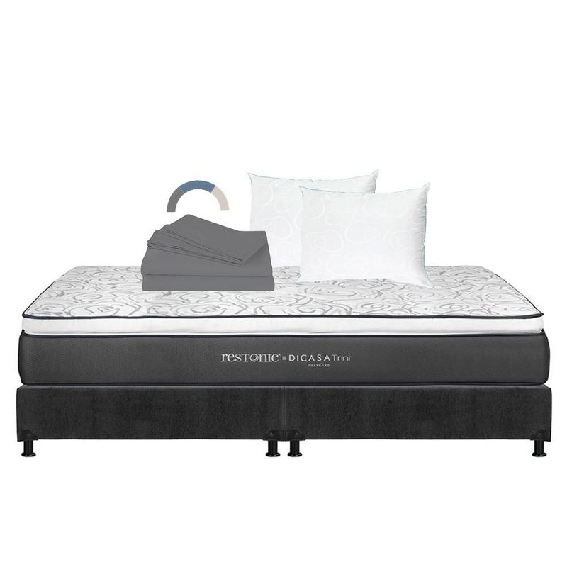 Colchón King Size Restonic Trini Gris Carbón+ Box+ Almohada Oso 2+ Sabanas Basic RGH