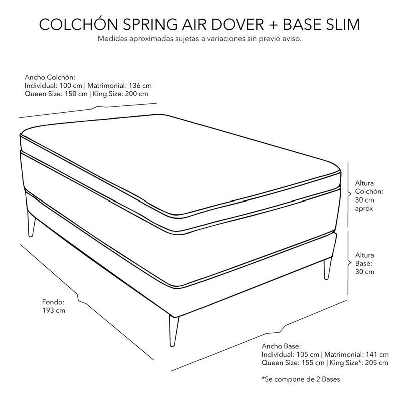 Colchón King Size Spring Air Dover+ Base Slim Gris Carbón CDZ