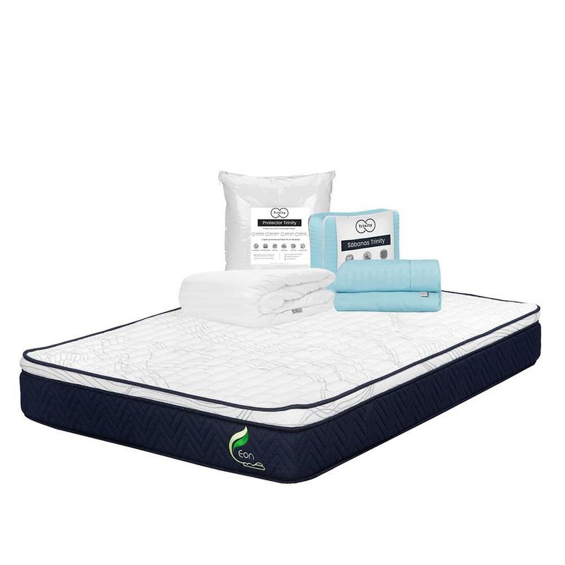 Colchones y BoxesColchones en CajaMatrimonialColchón Matrimonial Restonic Eon Azul+ Protector+ Sabanas TRY